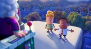 In a mid-credits scene, George and Harold realize Mr. Krupp's secretary Miss Anthrope, whom they put on the phone via a false competition for $1 billion, has been on the phone for the entire film. They then get a hold of her and she drops the phone, much to her anger.