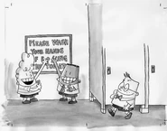 The next day, Ms. Ribble (for some reason) is out sick with a cold. Mr. Krupp is put as a substitute but is shocked to find almost everyone wearing raincoats and umbrellas. He demands an explanation for this before Melvin sneezes. Mr. Krupp returns a few moments later with fresh clothes, a raincoat and an umbrella. When Mr. Krupp tells them they are going on a field trip to Snoddy Bros. Tissue Factory, Melvin starts speaking like Frankenstein and declares out "Me no like tissues!", shocking all of the other students.