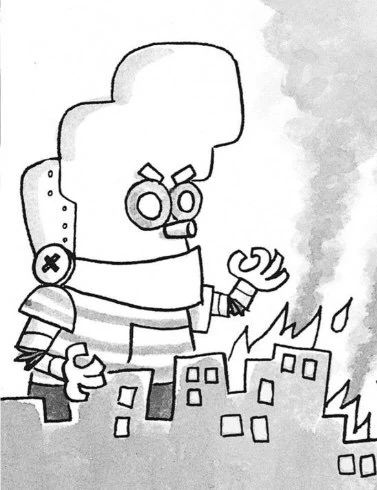 His upper torso expands, shooting out a hand holding a giant can of spray starch, which makes underwear stiff and hard. After the Harold 2000 kicks a kickball into outer space, Benjamin Krupp turns himself into Captain Underpants, prompting the robots to fly after him. Melvin Sneedly tattles on him and Robo-George. Robo-George and The Harold 2000 spray Captain Underpants, but he soon regains his confidence with spray starch and destroys the two giant robots.